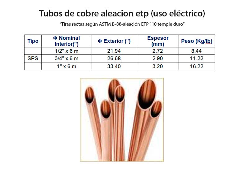 TUBOS DE COBRE ALEACION ETP (USO ELECTRICO)