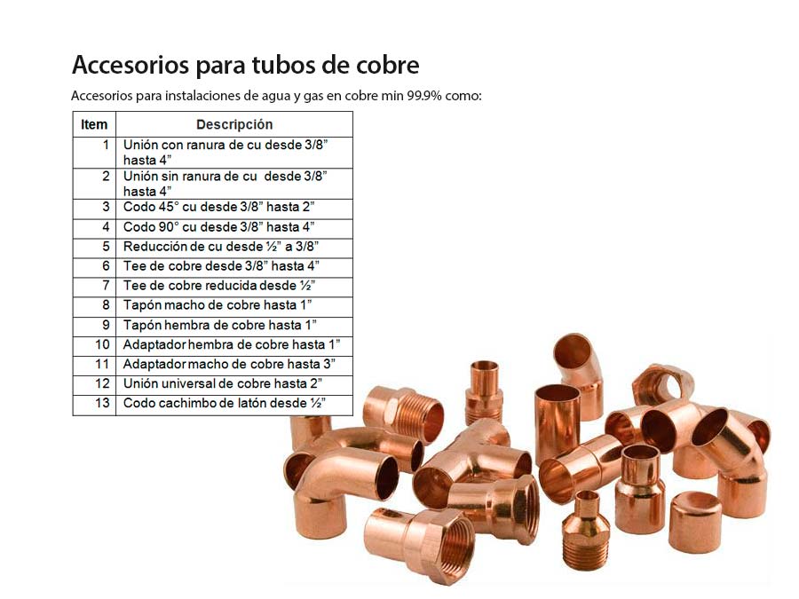 ACCESORIOS PARA TUBERÍAS DE COBRE